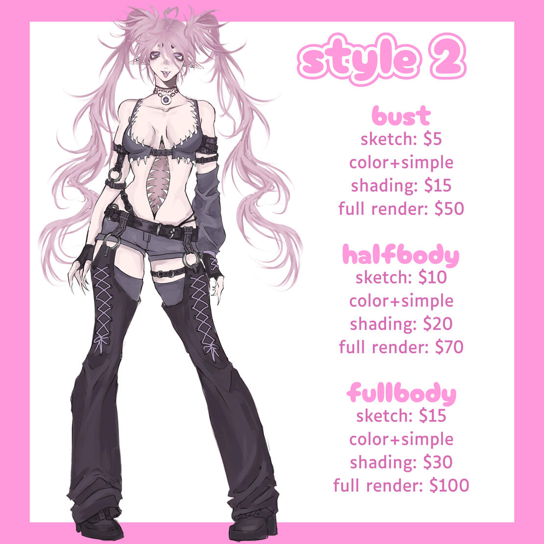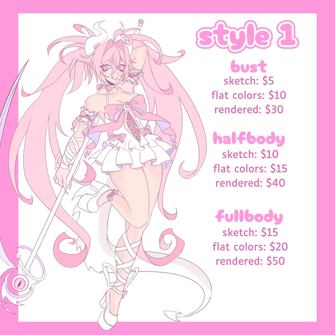 • Prices listed are the base price. Depending on the complexity of the commission request, the price may increase.